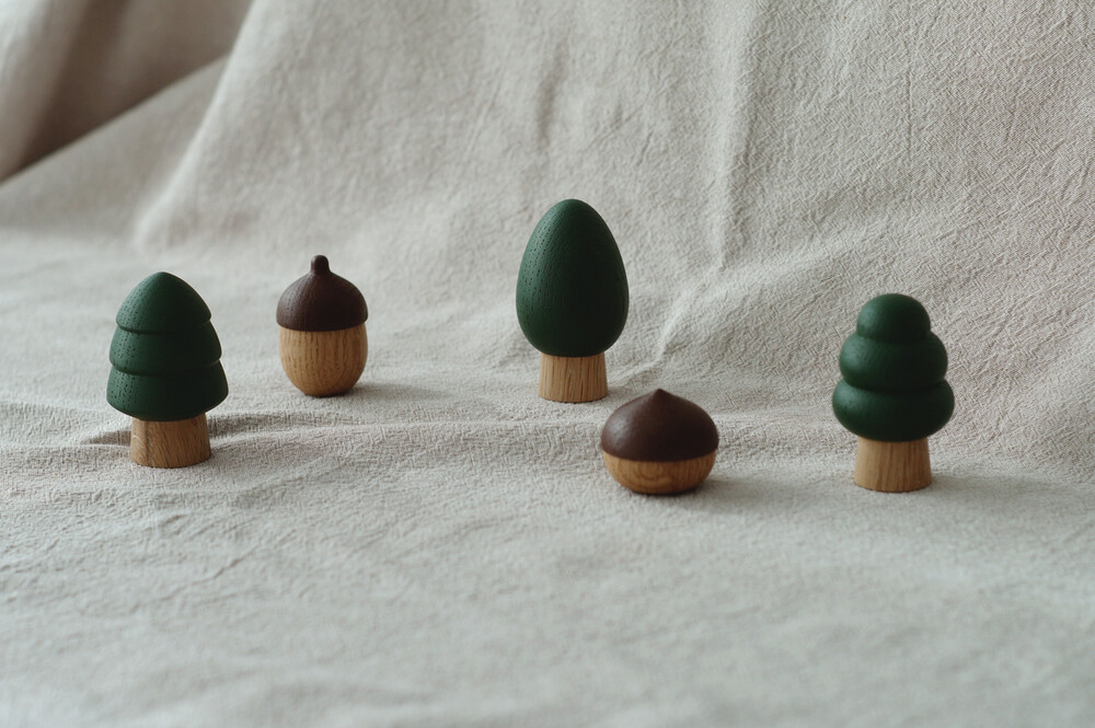 여러 형태의 나무들, 바닥 곳곳 숨어있는 작은 친구들.