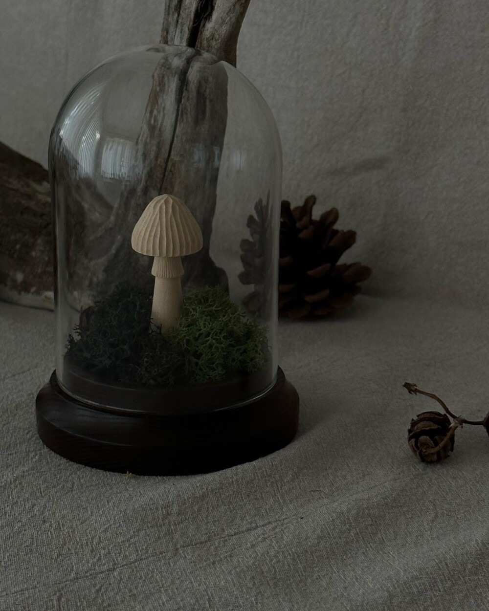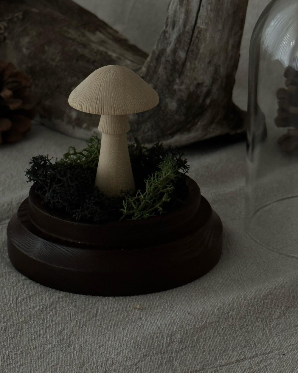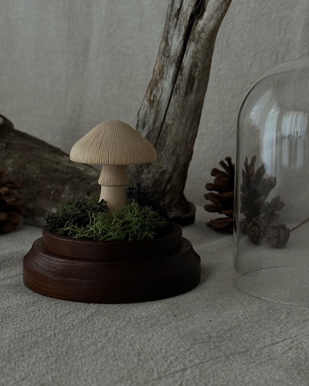 한땀 한땀 버섯의 주름을 조각하여 가까이 보면 더욱 사랑스러워요.