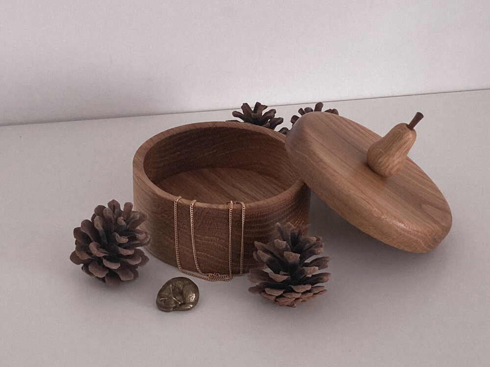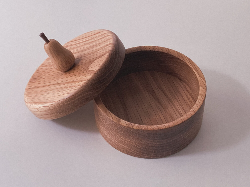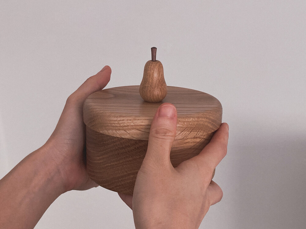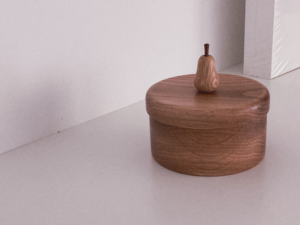 빈티지한 느낌을 주는 오크와 서양배 오브제가